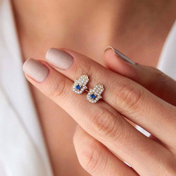 ✨ A meaningful Hamsa stud earring design symbolizing protection and positive energy