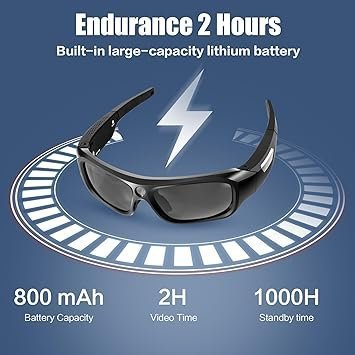 - HANDY TO TRANSMIT AND VIEW – Just connect the sunglasses and your computer with the included USB cable, then you can enjoy the exciting moment that you are motorcycling, rowing, mountaineering, camping, driving, hiking, skateboarding, hunting…