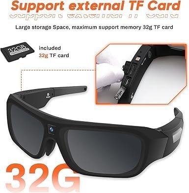 • Check Your Video: This Camera Glasses supports up to a 256GB memory card (NOT INCLUDED), included 32GB sd card.You can playback the content on a computer or a tv by the included usb cable