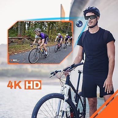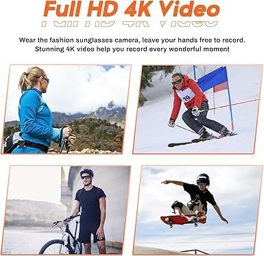 • 4K HD Sunglasses Camera: It’s a perfect combination of glasses and camera. The appearance is a fascinating sunglasses, 100% UV400 protection polarized lens, protect your eyes from harmful UV rays, reflected light, make vision clear, comfortable and not dazzling. Then it’s a camera for taking picture and amazing video but without audio