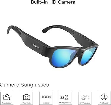 • ULTRA FULL HD 1080P CAMERA: Camera Sunglasses is with Ultra Full HD Resolution Camera and Crisp Photo and Shooting 16M Pixel Photo by 32G Supplying Memory Card