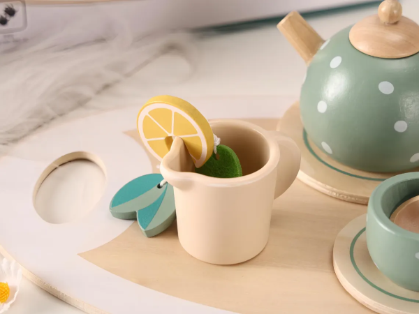 Tired of plastic toys that break? Create meaningful, heirloom-quality memories with this personalized wooden tea set for toddlers, designed for imaginative pretend play.