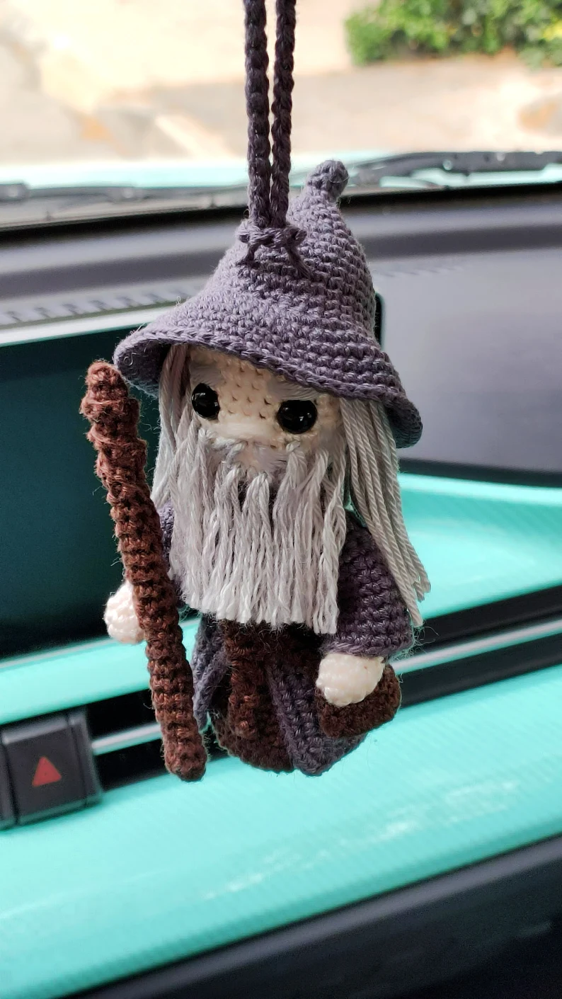 Wizard car accessories, Gandalf Crochet Amigurumi Doll,Car Decor, Key Chain.—FREE SHIPPING INTERNATIONAL
